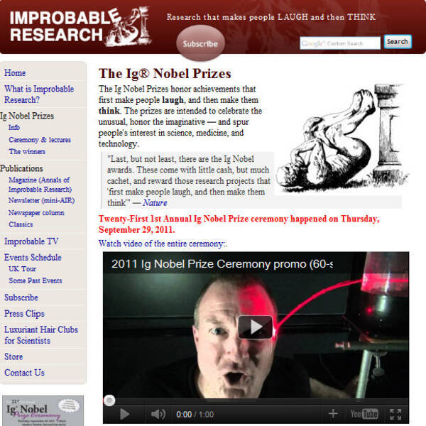 日本人が5年連続受賞した イグ ノーベル賞 過去のユニークな受賞例は 11年10月5日 エキサイトニュース